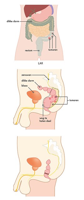 Doordat de operatie dichtbij de anus wordt uitgevoerd kan dit gevolgen hebben voor uw ontlastingspatroon, continentie en leven. Dit heet het 'LAR-syndroom' (verderop leest u hier meer over).