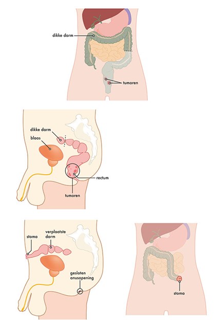 Als een endeldarmtumor dichtbij de anus ligt, kan het nodig zijn om, naast de endeldarm, ook de anus en een deel van de bekkenbodem te verwijderen. Dit is een grote operatie. Hierbij wordt de anus volledig weggehaald. Na deze operatie wordt er een definitief dikke darm stoma aangelegd.